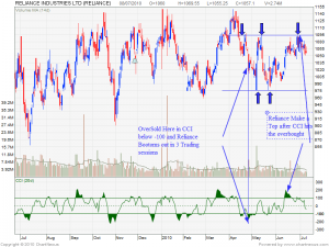 Similarly on Upside after CCI make a high of 200 Reliance hit the top and started its downward journey.