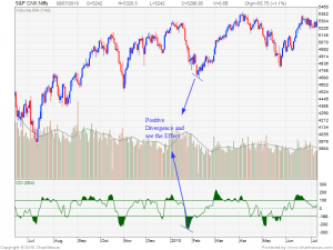 An Chart explanation with a Positive Divergence on Nifty when CCI is applied.