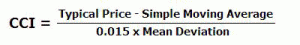 The final step is to apply the Typical Price (TP), the Simple Moving Average of the Typical Price (SMATP), the Mean Deviation and a Constant (.015) to the following formula: