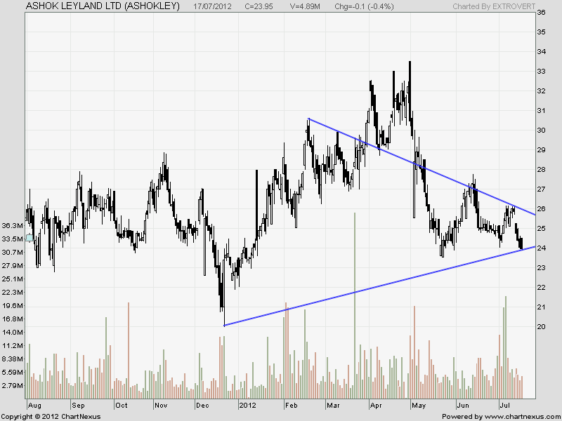 Ashok Leyland has been declining from past 5 trading session and a pullback with trendline seems a logical move.Volumes were higher today suggesting longs were created near the trendline support