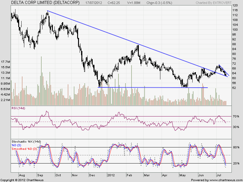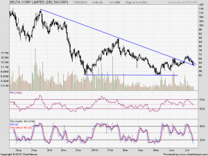 Delta Corp is another stock which is facing trendline support