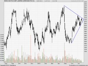 Hero Honda was forming an symmetrical triangle formation,tomorrow is results day and breakout and breakdown should occur.