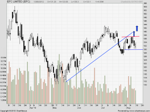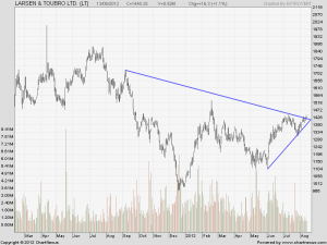 LT is on verge of breakout above 1442. Breakout above symmetrical triangle.