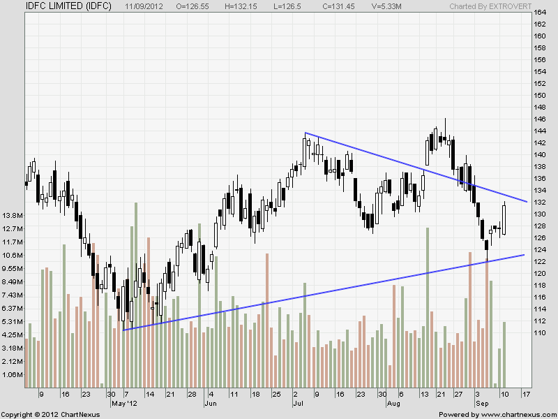 IDFC has show sign of breakout, Supply zone is coming with trendline resistance at 132.8 and after that 135 odd levels.