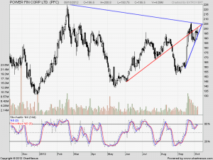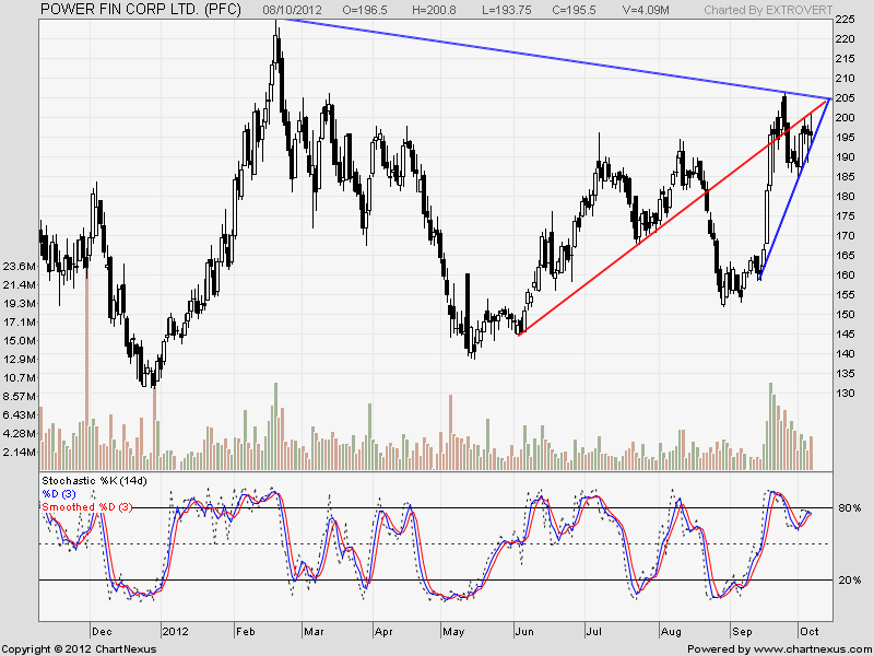 PFC is still trading in the trendline we have discussed on Friday. 200 on upper end and 192 on lower end is the trading range.