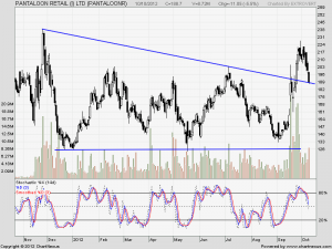 Pantaloon as suggested yesterday took a beating and is now near to its important trendline support of 187.break of 187 can see stock going back to 165 odd levels.
