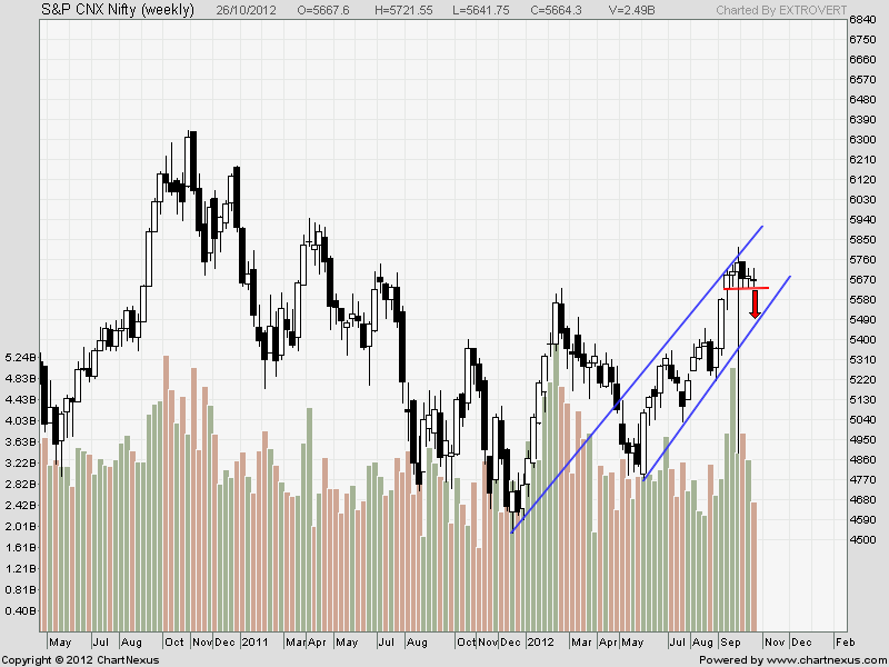 Close above 5217 is bullish for market for rest of year.Support on Monthly charts comes at 5604.As shown in below chart September is month of Big moves and we have moved 8.5% . October series after big move seen in September should be a cool off month in which we will see range trading moves from 5500-5850.