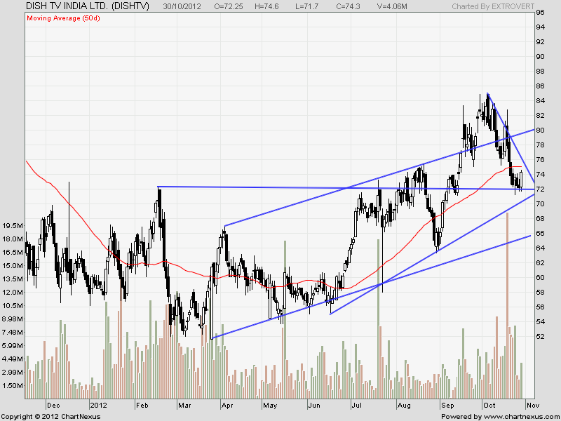 Dish TV has shown a good move with volumes. Stock has formed a double bottom at 71.7.
