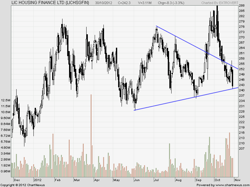LIC is near its lower trend line support with positive divergence in indicators.