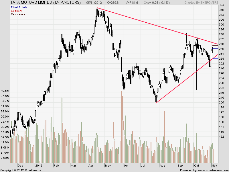 Tata Motors came with a bad set of numbers. Stock is bound to open gap down. 258-260 is the range where support can emerge. Failing to do so stock will can break its recent swing low of 245