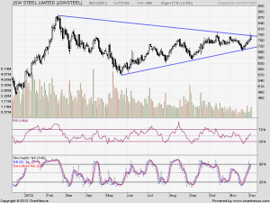 JSw Steel is near its trendline resistance 776, If stock is able to cross can see a breakout , Volumes should hold the key.