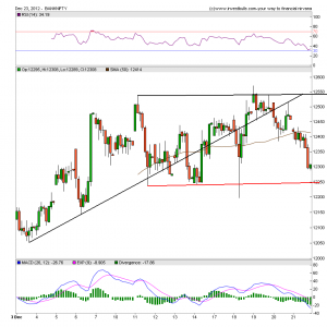 As per Fibonacci Fan theory 12250 should be strong support any break below it can see a quick correction in range of 12000-11800. Closing and sustaining above it can make Bank Nifty move 12600-12800 odd levels.