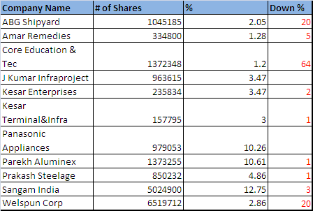Another story doing round is Sanjay Danghi an Operator barred from SEBI has to liquidate his position due to their inability to honor margin commitments.I did a search and found out the portfolio of Mr Danghi, well this story make sense as most of stock in his portfolio has taken the beating. Please look at the Table below: