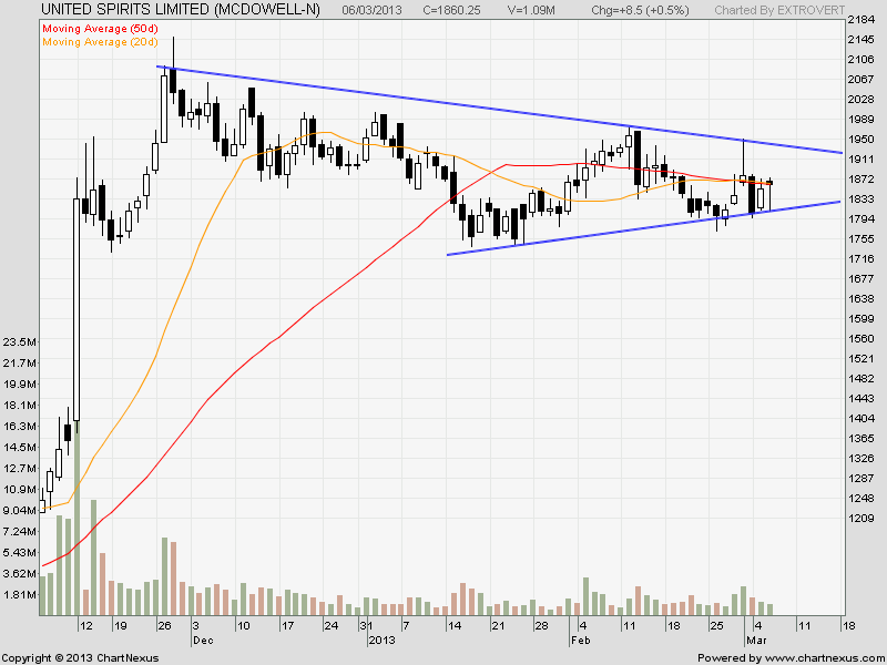 United Spirits has been stock seems to have taken resistance from its short term and mid-term cluster of moving averages (as shown in the chart).