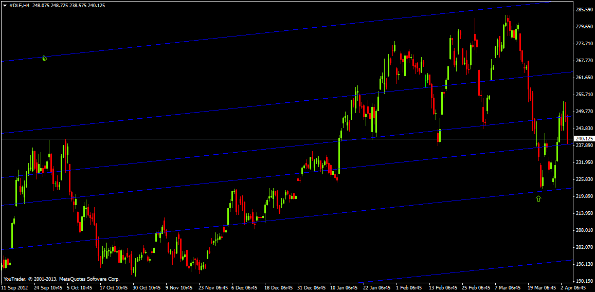 DLF has been giving good trading moves,4 hour DLF shows above show taking perfect support at liner regression channels.