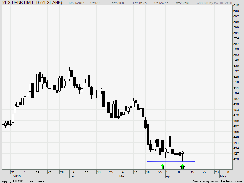 Yes Bank is forming a double bottom formation with a Pin Bar reversal candlestick pattern.