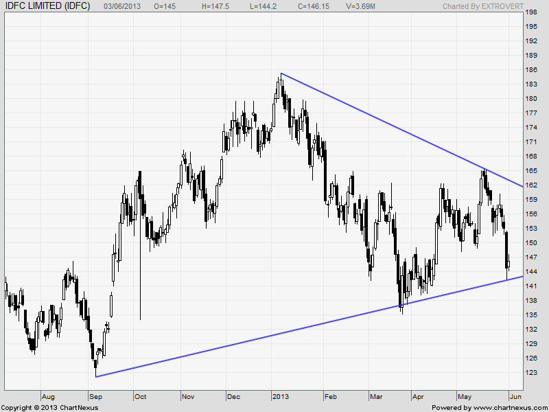 IDFC is taking support at its long term trendline and formed an inside day pattern.