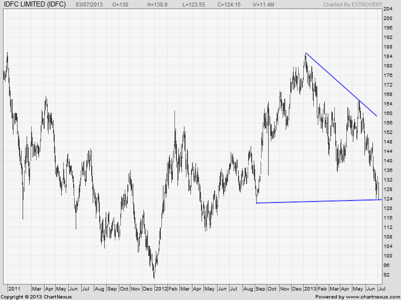 IDFC is near its important medium term support of 123, Holding the same bounce back can be seen, Unable to hold and any close below 123 will lead a downfall till 110.
