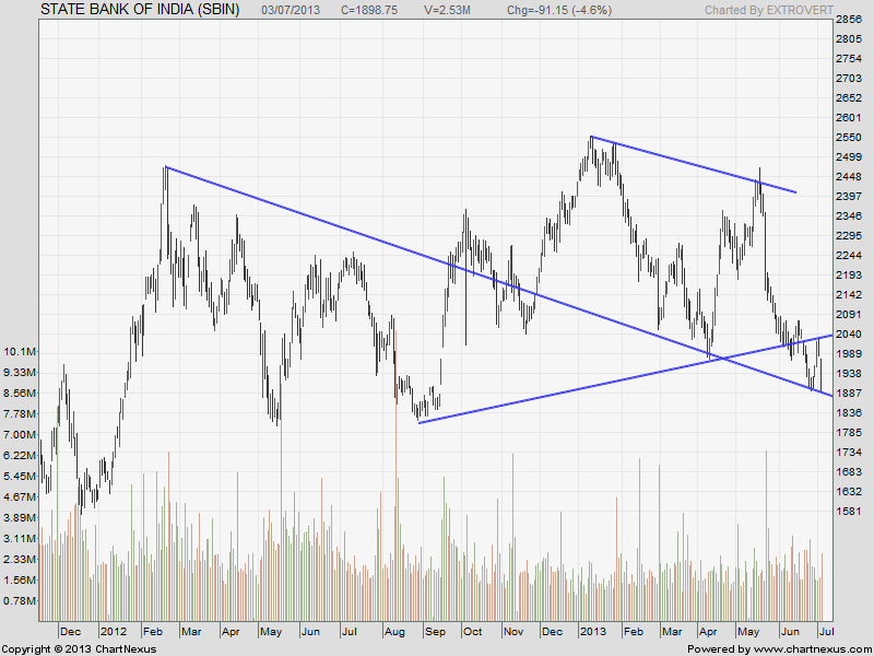 SBI is very near to its trendline support zone of 1890, Any close below 1890 will take SBI to 1830 and 1741 in medium term.