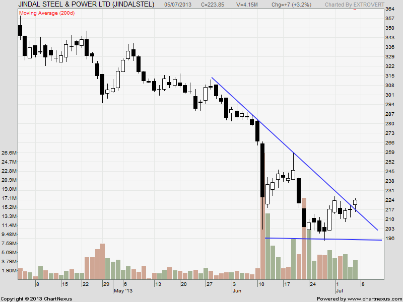 JSPL has broken its downward falling trendline and closed above it, We need to see follow up action now. Positional traders should keep an eye on 233 on closing basis. Above 233 Target comes at 253,264 in short term.