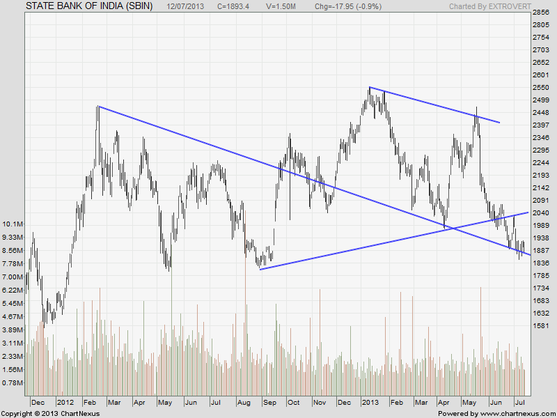 SBI has been consolidating in a tight range of 1850-1928 from past 5 trading session,Any close above 1936 gives a short term target of 1980.Close below 1848 can see a swift downmove till 1800. SO till its trades between range of 1850-1928 avoid trading, aggressive traders can buy support and sell resistance.