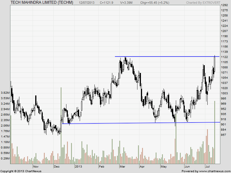 Tech Mahindra is trading at higher end of its trading range,895-1122. Positional traders shuld keep eye on 1131 levels. Any close above it gives a short term target of 1188 and 1220. Unable to close above 1131 can see a pullback back to 1070 odd levels.