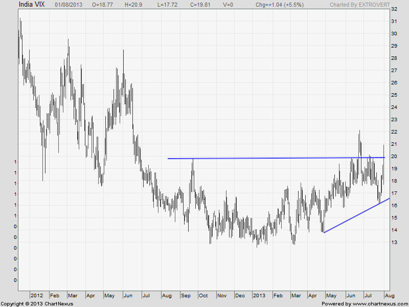 - Total Future & Option trading volume at 1.57 lakh with total contract traded at 3.6 lakh , PCR (Put to Call Ratio) at 1.07.VIX is again approaching the breakout above 20.