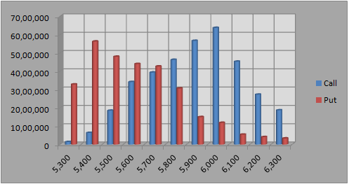 - 6000 Nifty CE is having highest OI at 63 lakhs with liquidation of 6.8 lakhs in OI, 5900 CE added 4.3 lakh in OI and having second highest OI at 56.7 lakh,5500 CE and 5600 CE adding 31 lakh in OI suggests 5500-5600 remains the new fighting ground . 5400-6000 CE added 46.8 lakh in OI.