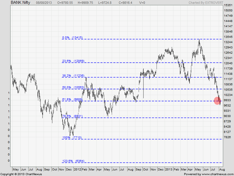 Fibo Fans has been applied on Bank Nifty weekly charts and is near the resistance of 9716.