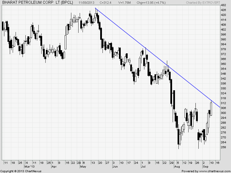 BPCL is also near its trendline resistance,breaking the same will lead to further upside till 322 levels.
