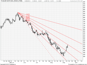 PNB has been following its fibo fan perfectly. Stock is near very important Gann number of 521. Any close above 521 gives short term target of 555.