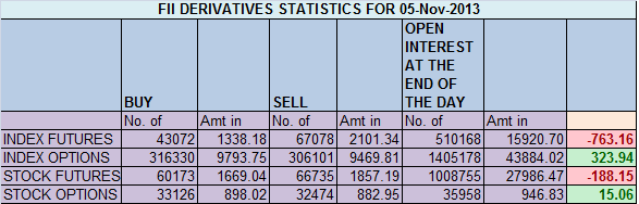 - FIIs sold 24006 contracts of Index Future (sold 11849 long contract and 12157 shorts were entered ) worth 764 cores with net Open Interest decreasing by 393 contracts.So FII’s have slowly started entering shorts in Index Futures.