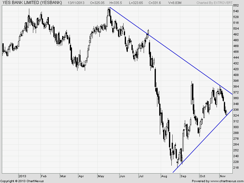 Yes Bank took support at downward falling trendline,Positional traders should keep an eye on 343 level, any close above it short is heading towards 356 and 369 in short term.