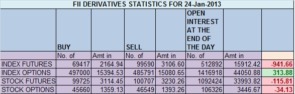 - FIIs sold 30173 contracts of Index Future worth 942 cores (11443 Longs were squared and 18730 shorts were added ) with net Open Interest increasing by 7287 contracts, so FII’s exited longs and added shorts.