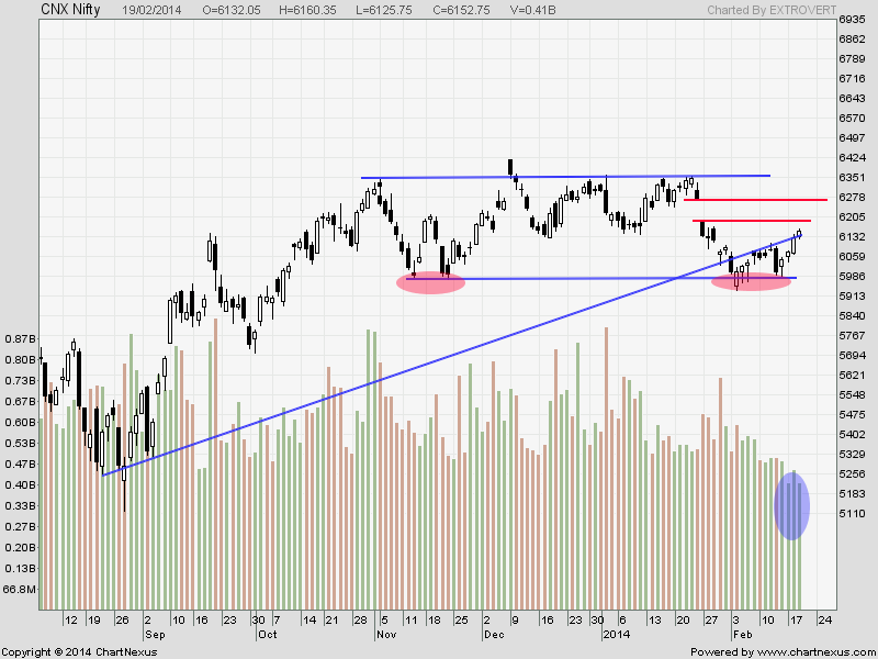 - Market always rise on wall of worry, I have discussed in weekly analysis 90% of time market moves in direction which cause pain to maximum market participants. Again crowd theory worked and Nifty rose for 4 day in row and closing above its 100 DMA. Closing above 6160 nifty will attempt the gap area of 6188. Hourly charts are overbought and dips near 6100 should be bought into. Nifty has given lots of whipsaws off late , traders holding long as per PAC should part book in range of 6170-6185.
