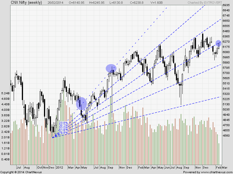 - Nifty is near its Fibo fan resistance as seen in below chart, We have Weekly and Monthly closing tomorrow, Bulls will like to close above 6281 and bear below 6197 which will decide further trend of market.