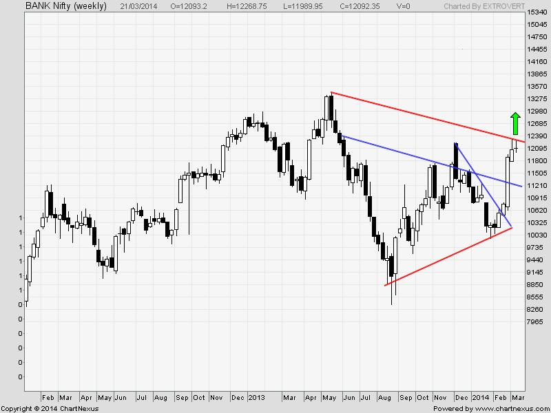 Bank Nifty after doing a weekly breakout made a big bullish engulfing pattern rallying almost 10.4% 2 week before and a perfect doji candle last candle to consolidate the gains. Bulls will regain strength only above 12300 and bears below 12056.