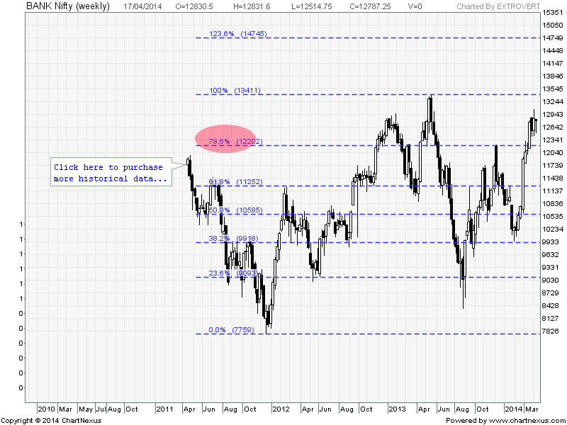 Fibo Retracement also signalling bank nifty will march towards its all time high of 13400 once its able to close and sustain above 13000.