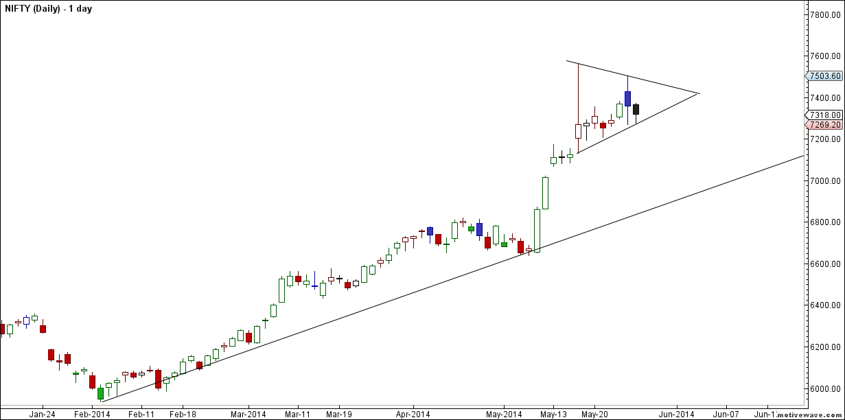 - Nifty is forming a triangle on daily charts, height of triangle comes at 434 points. Now to complete the triangle formation market has to give one rally on upside near 7380-7400 zone. Triangle patterns success is around 50% so do caution is advised.