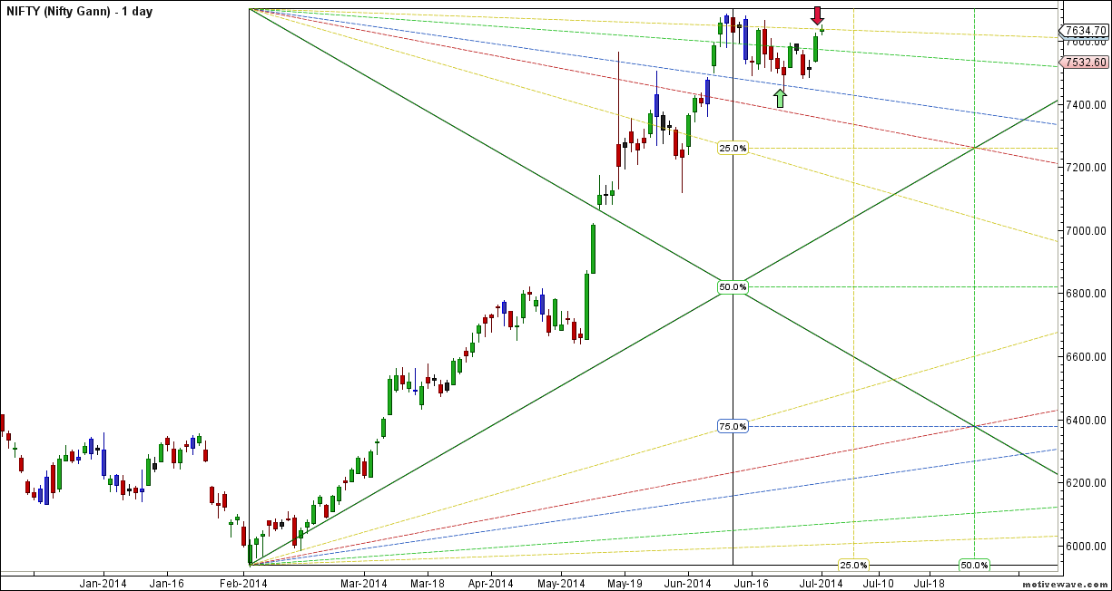 Also Gann chart shows Nifty is still not able to close above yellow line for new highs. Expect a big move in next 2 trading sessions.
