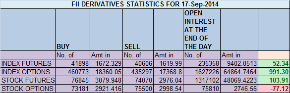 - FII’s bought 1292 contract of Index Future worth 52 cores, 5.9 K Long contract were squared off and 7.2 K short contracts were squared off by FII’s. Net Open Interest decreased by 13.2 K contract , so FII squared off long and shorts in Index futures.