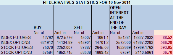 - FII’s sold 2.2 K contract of Index Future worth 88 cores, 4.2 K Long contract were added by FII’s and 6.4 K short contracts were added by FII’s. Net Open Interest increased by 10.7 K contract , so FII have slowly started shorts in Index Futures.