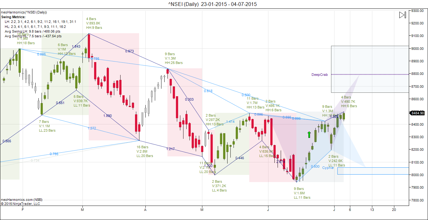 Harmonic also suggests if range of 8432-8450 is held rally can continue till 8740/8800 in next 2 weeks.