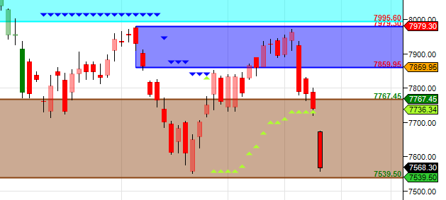- As discussed in Last Analysis Now as per Harmonic Studies Nifty is forming CYPHER pattern which gets completed around 7641 so if 7641 holds we might see a fast and furious short covering rally. Nifty opened with gap down and was unable to hold the 7641 level and invalidated the CYPHER harmonic pattern and continued with its fall and is approaching near the swing low of 7551, break of the same we can head towards 7503 where SHARK pattern gets completed. We got the sign of fall yesterday as Nifty closed below 7767 and is almost done with the supply demand zone of target of 7540. Till we do not see close above 7767 Bulls will on back hand and bears will try to cover position in range of 7540/7503 if and when it comes. Bank Nifty did Shark Pattern final target,EOD Analysis