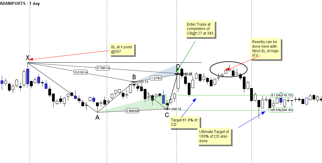 I have shown Daily chart of Adani Ports and marked the potential harmonic pattern in forming