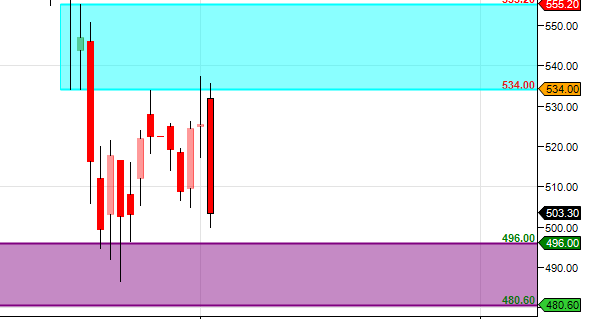 Sell below 496 Tgt 491,485 and 480 SL 500