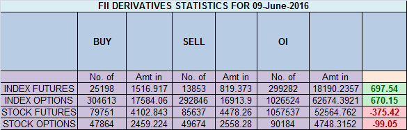 - Nifty June Future Open Interest Volume is at 2.15 core with addition of 0.5 Lakh with increase in cost of carry suggesting long position were added today, NF Rollover cost @7961 closed above it