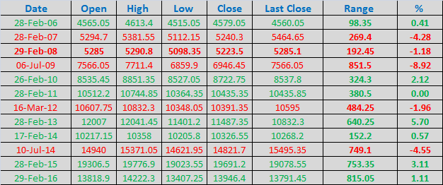 The above depicts the Volatility and Range Expansion Nifty has witnessed in past 20 Budget session and Bank Nifty is past 10 Budget Session.Just by going at the sheer number its looks mind boggling. So Stop Losses are must for traders on Budget day. Traders who are weak heart having small capital till 5 lakhs and cannot digest the bout of volatility you are going to witness just stay away from market for Budget day. I know its difficult to control your emotions not to trade on such volatile day but if your caught on wrong side of trade you can lose big chunk of your capital in matter of minutes.