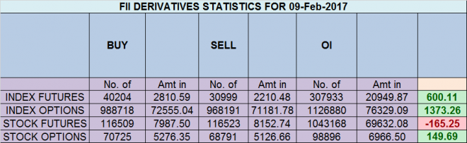 - FII’s bought 9.2 K contract of Index Future worth 600 cores ,8.7 K Long contract were added by FII’s and 489 short contracts were liquidated by FII’s. Net Open Interest increased by 8.2 K contract, so rise in market was used by FII’s to enter long and exit short in Index futures.Winning Trader’s Mindset