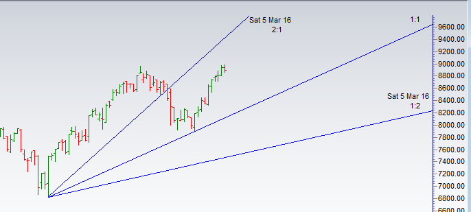 As discussed in last analysis 8957 done now coming towards 9120/9220/9300 as per gann angles in next 3-4 weeks.